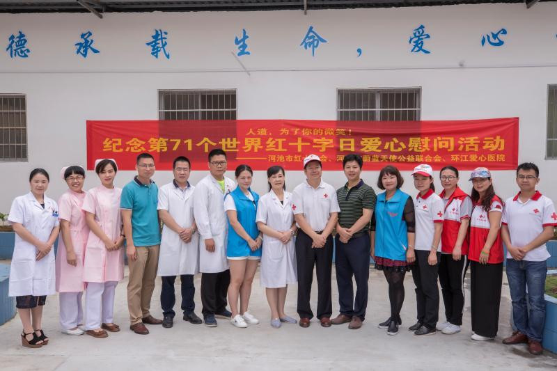 5月8日是第71个世界红十字日。市红十字会组织志愿者20多人深入环江爱心医院,为那里的患者送去一批爱心物资,并为患者进行口腔疾病检查和心理咨询疏导,让患者感受到来自社会的真诚关怀。志愿者们还深入到病区,与患者一起打乒乓球,帮患者理发、剪指甲等,医院里到处充满欢声笑语